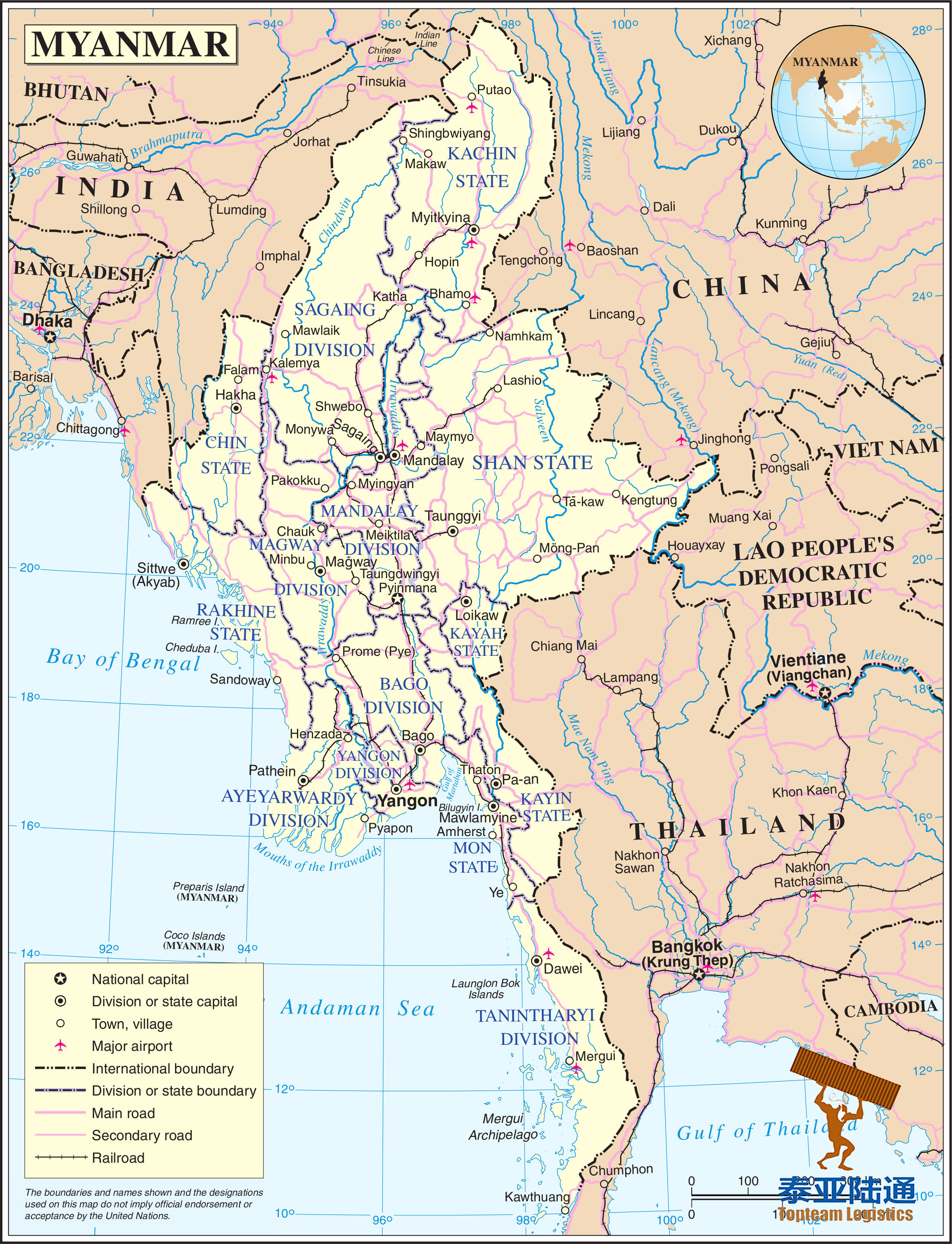 内陆国家多式联运专家,泰亚陆通专业提供从中国到缅甸Myanmar内比都Naypyitaw等城市运输服务。